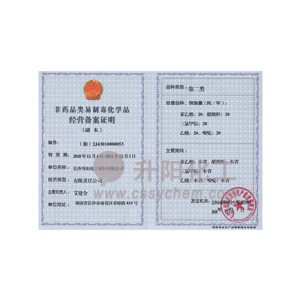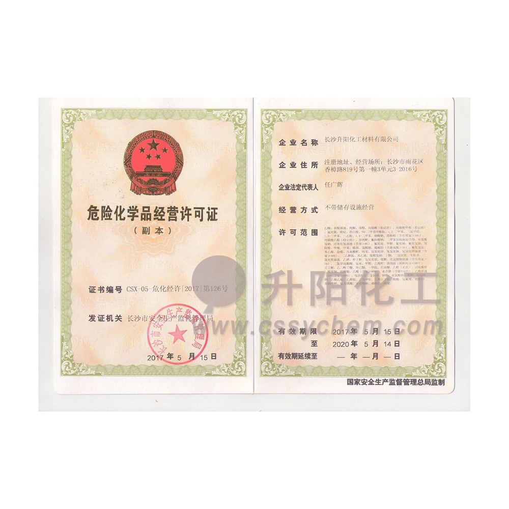 長沙升陽化工材料有限公司成立于2009年,是一家已經(jīng)擁有10年化工原料經(jīng)營歷史的企業(yè)。我們本著“服務(wù)至上,以誠為本”的原則,為廣大的新老客戶提供最優(yōu)質(zhì)的產(chǎn)品、最便捷的服務(wù)。歷經(jīng)10多年的積淀與發(fā)展,現(xiàn)已成長為湖南省頗具規(guī)模的專業(yè)化學(xué)品服務(wù)供應(yīng)商之一。?公司集貿(mào)易,科研,倉儲(chǔ),物流為